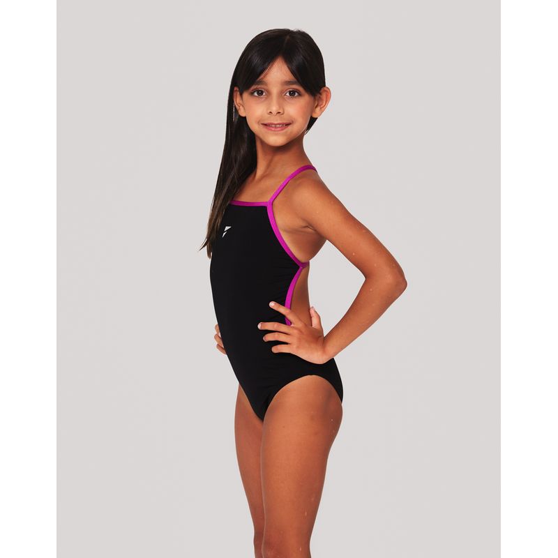 O maiô de natação infantil é perfeito para quem procura um maiô de natação cavado e muito aberto  nas costas, evitando marcas indesejadas de sol. Possui ajuste inteligente ao corpo e é ultraressistente à produtos químicos. É indicado para todos os tipos de treinos e atividades aquáticas.