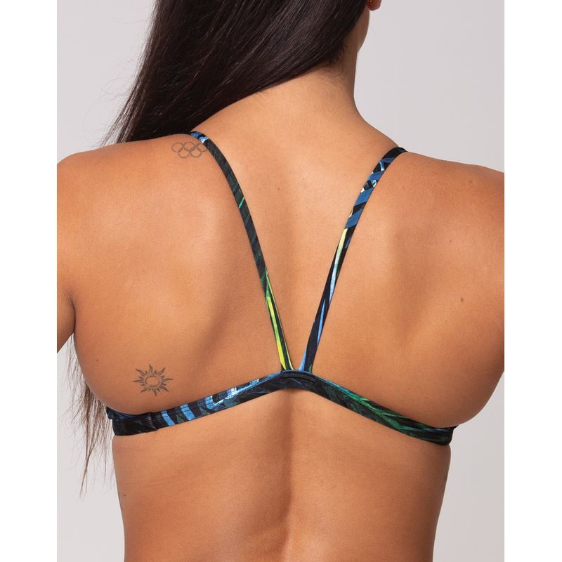O top sunquíni de natação, da Linha Profissional, modelo Bela, tem formato triangular, alças finas em V e é ideal para quem gosta de treinar e se bronzear. Possui compressão, ajuste inteligente ao corpo e é ultrarresistente a produtos químicos. Indicado para todos os tipos de treinos e atividades aquáticas.