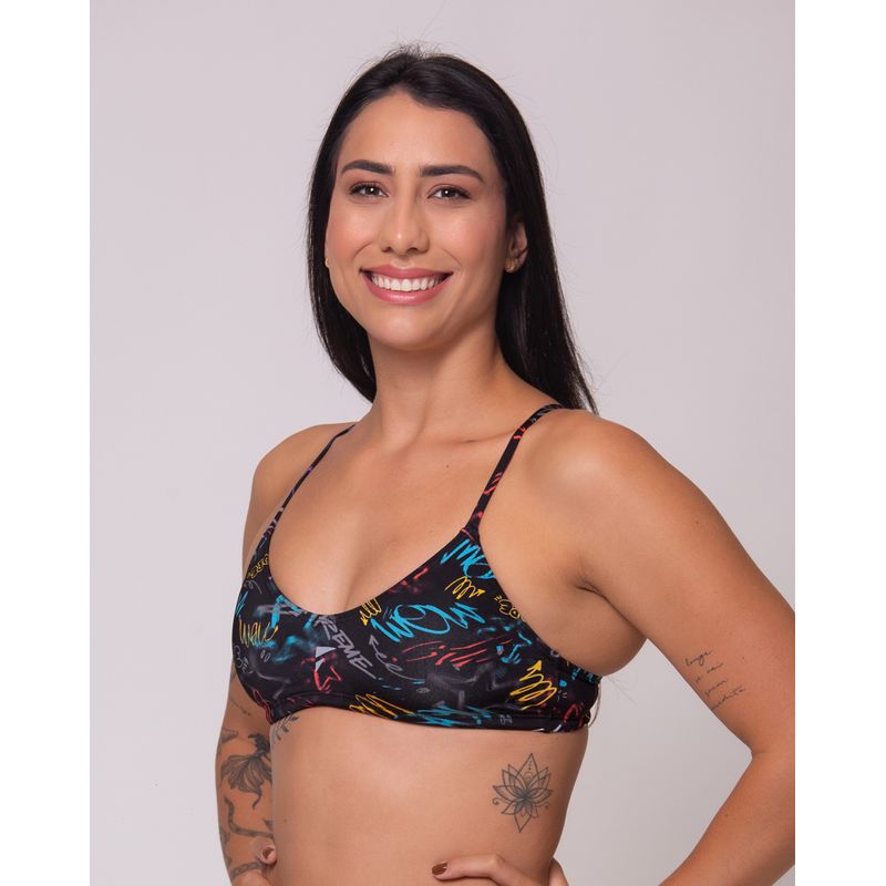 O top sunquíni de natação, da Linha Profissional, modelo FAB, tem alças finas em V, decote em U e é perfeito para todos os tipos de treinos, atividades aquáticas e também para se bronzear. Possui cordão de ajuste para segurança. É ultrarresistente a produtos químicos.