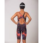O Traje de competição 4Fast feminino alças largas e abertura oval nas costas possui modelagem muito apertada e ajuste perfeito ao corpo. Não possui forro, mas não fica transparente. O tecido é ultraleve, tem um toque macio, seca rápido e oferece um deslize perfeito na água. Não é indicado para treinos, somente para competição.